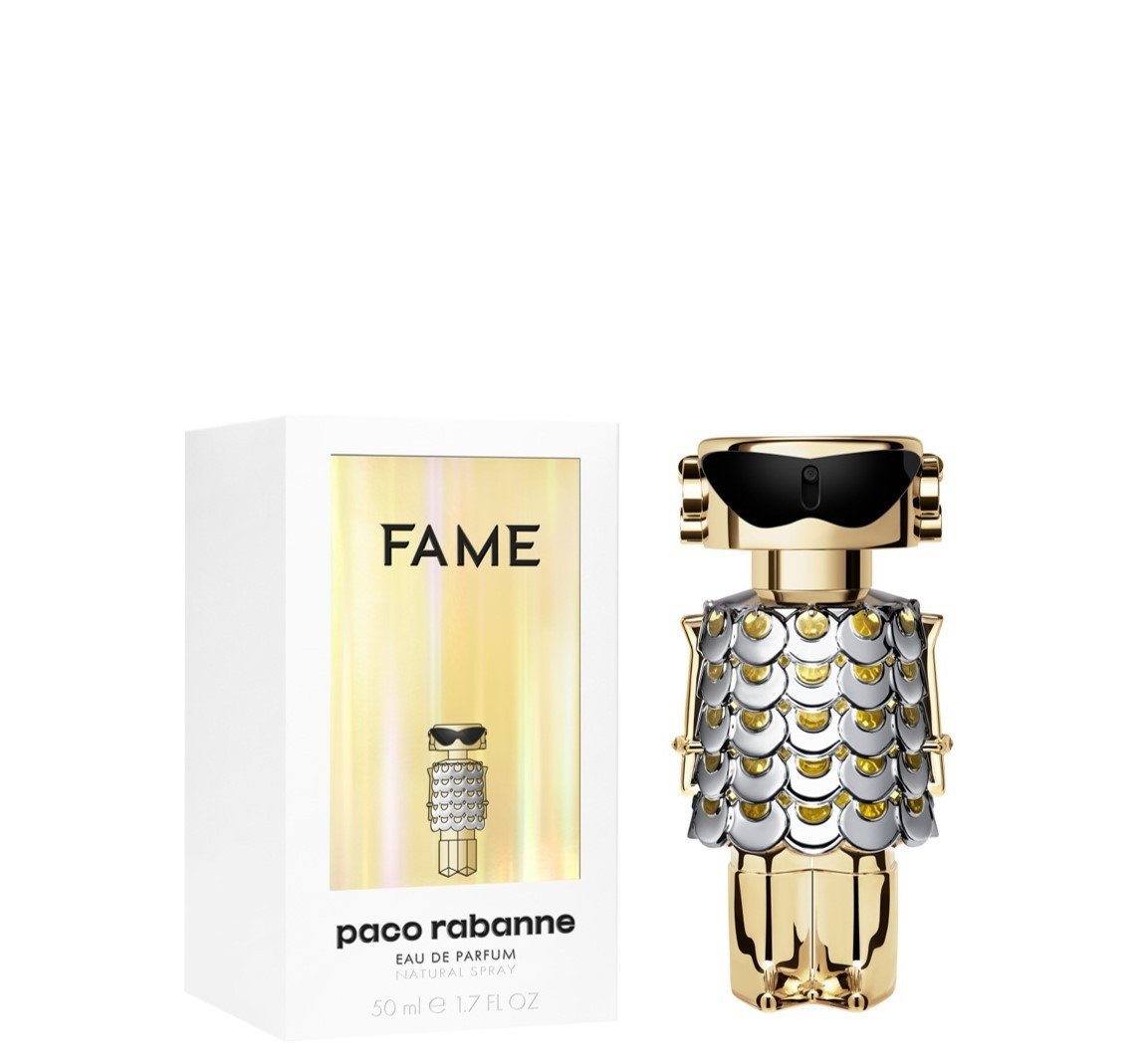 Paco Rabanne Fame je cvetni drveni mošusni miris za žene. Ovo je novi miris, lansiran 2022. Ovo je zaista neodoljiv miris koji zrači radošću i smelom senzualnošću. Proizveden je u Francuskoj, 90% prirodnog porekla i 100% napravljen u Grasu od održivih sastojaka.